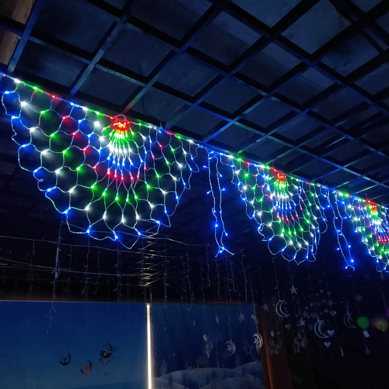 2.网状结构设计:6x4m尺寸覆盖大面积,适合圣诞树、墙面或树木装饰;