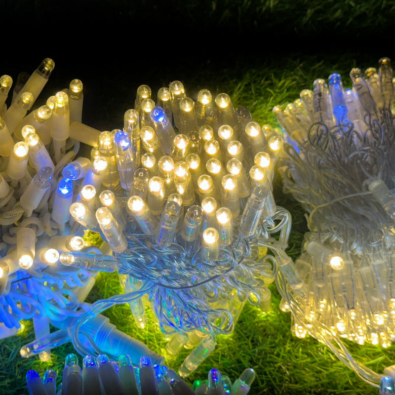 - 户外使用时,需固定灯串位置(如缠绕在圣诞树或景观结构上),并远离易燃物。