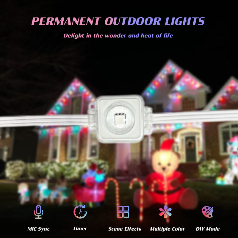 这款灯具专为户外节日装饰设计,尤其适用于圣诞节场景。其像素发光二极管(LED)技术可创造动态的视觉效果,如闪烁、渐变或图案变化,适合街道、庭院、建筑外墙等需要高亮度和防水性能的场合。