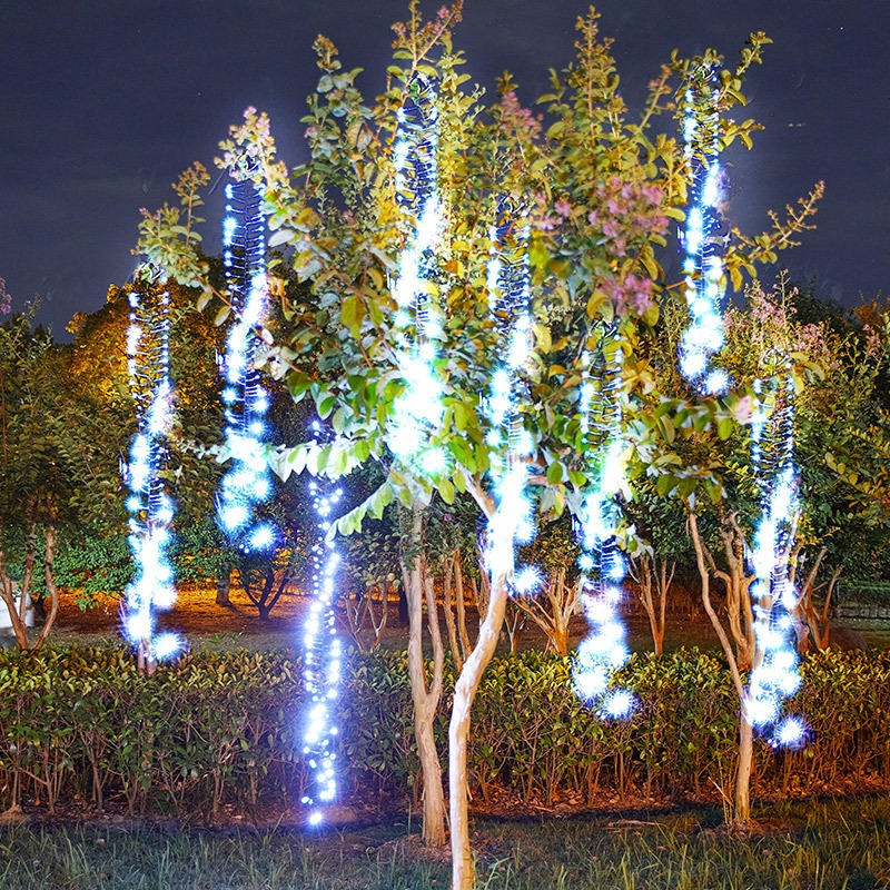 本产品是一款户外防水LED流星雨灯串,专为圣诞节、婚礼、花园等节日或庆典场景设计。每串包含120个LED芯片,支持多种工作模式(如追逐模式),具备IP65防水等级,适用于-20℃至60℃的宽温度范围。
