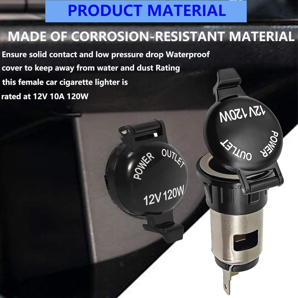 DC 12V Automotive Cigarette Lighter Socket with Waterproof Cover & Extension Cable