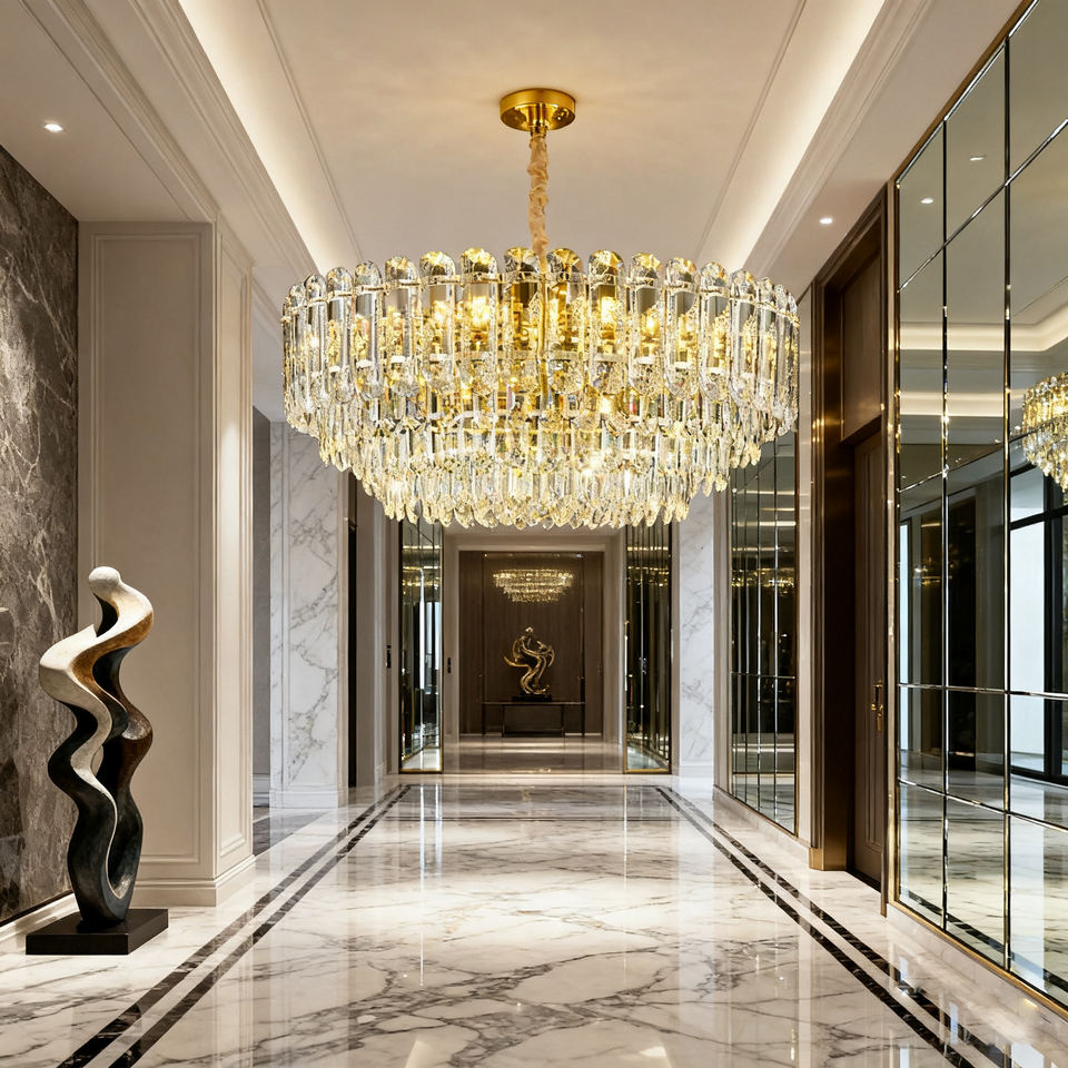 - 产品类型 | Product Type: 现代奢华LED水晶吊灯(室内酒店/客厅/楼梯适用)| Modern Luxury LED Crystal Chandelier (for Indoor/Hotel/Living Room/Staircase)