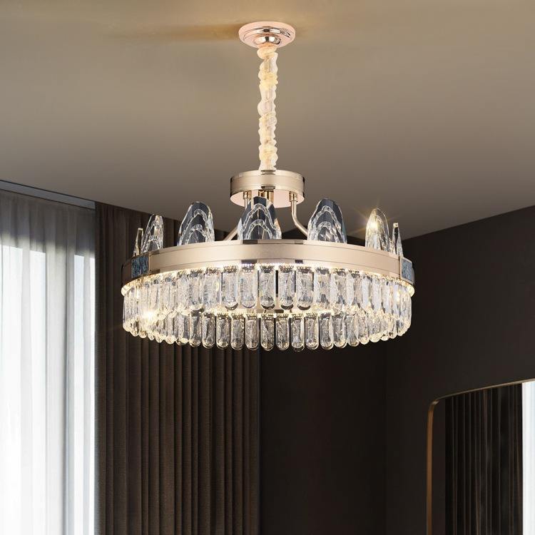 外观设计:奢华大气,线条流畅,水晶款折射效果好,金属款质感厚重,适配多种高端装修风格(欧式、法式、现代轻奢等)