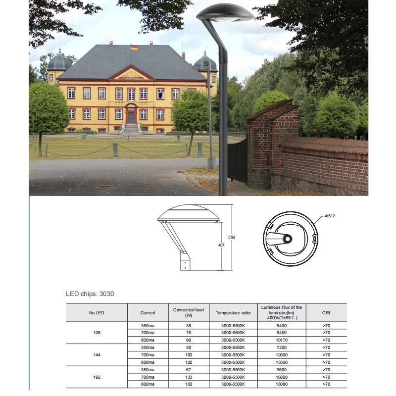 - 庭院道路:别墅庭院、小区道路、公园步道照明