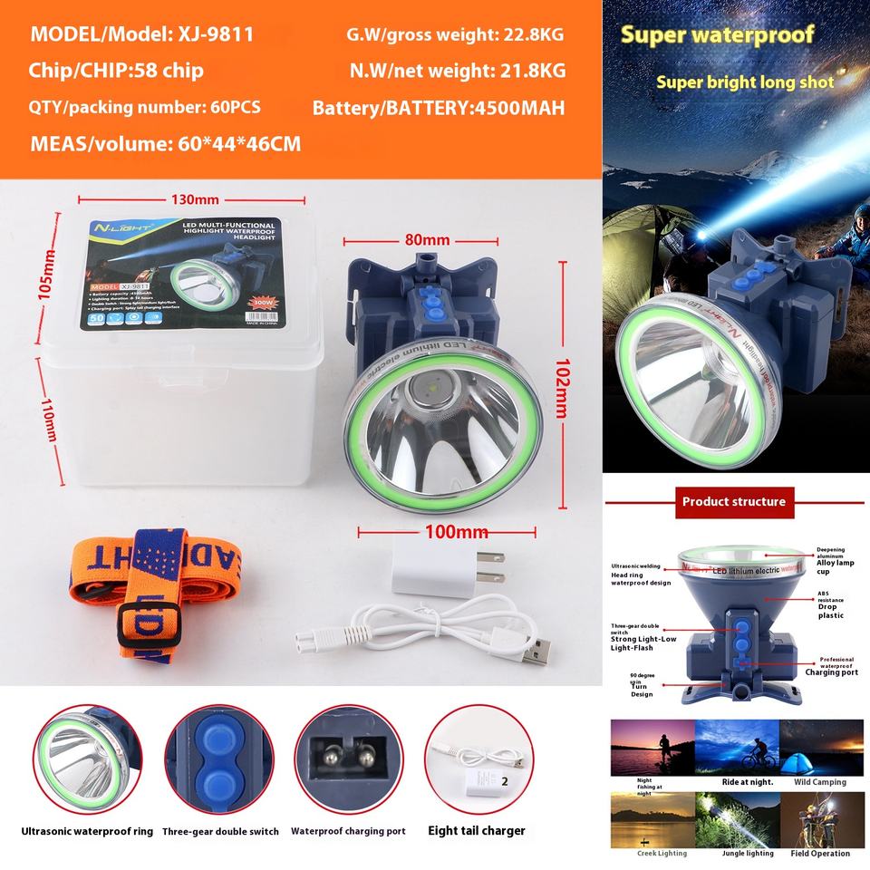 超强光远程可充电防水LED头灯 - Strong Light Long-range Rechargeable Waterproof LED Headlamp