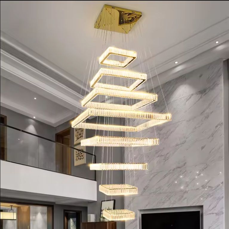 - 酒店大堂:8层大尺寸吊灯适合挑高5米以上的酒店大堂,搭配大理石地面、金属装饰,提升空间高端感;可与大堂整体照明系统联动,调节亮度(需定制调光功能)。