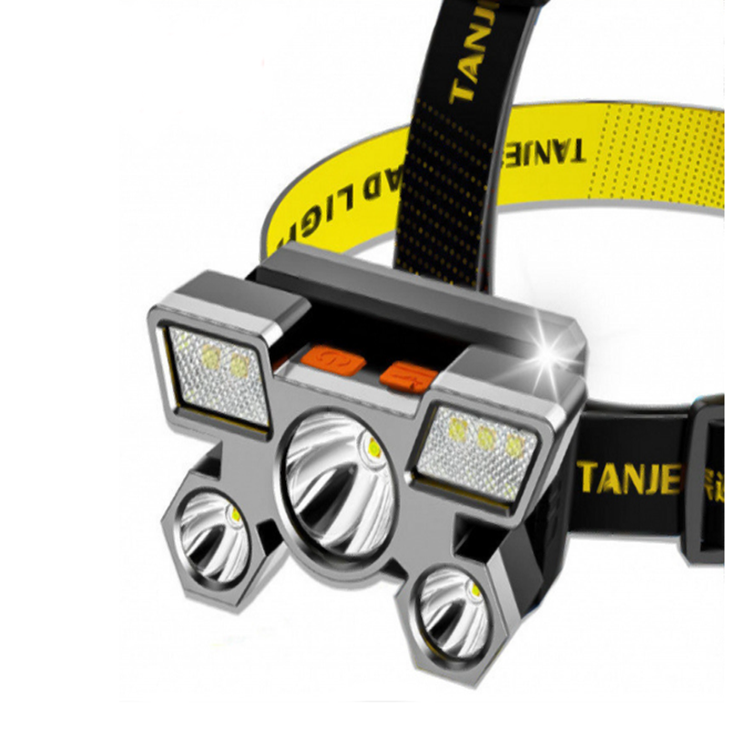 - 户外LED强光头灯五头大功率USB充电